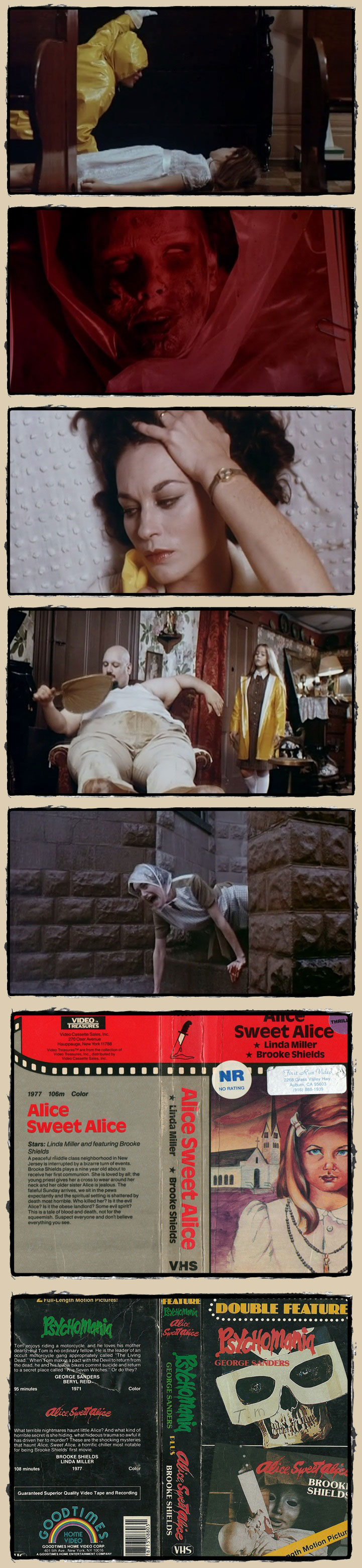 Alice, Sweet Alice’in sanıyorum en önemli özelliği Brooke Shields’ın ilk oynadığı film olması. Alice’in kızkardeşi Karen’ı canlandıran oyuncu, henüz filmin başında öldürülmesine rağmen filme gelecek dönemlerde işine yarayacak büyük bir katkı sağlamış. Zira film, belli ki Brooke Shields isminin azmettiriciliğiyle, aralıklarla tekrar tekrar vizyona sokulmuş. İlk olarak Communion ismiyle 1976’da, Alice, Sweet Alice ismiyle 1978’de ve de Holy Terror ismiyle 1981’de yeniden yayınlanmış.