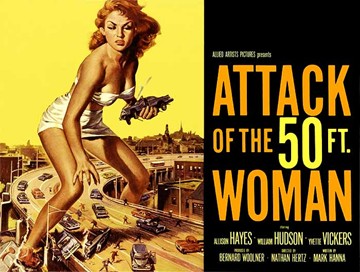Attack of the 50 Foot Woman B-Film denince akla gelen ilk filmlerden bir tanesi. B-Filmlerde olması gereken kötü efektler, kötü oyunculuk, komik diyalogları filmde fazlasıyla görmek mümkün. Filmin ana karakteri Nancy’i canlandıran Allison Hayes bir starda olması gereken güzel bir yüz, çekici bir vücut ve tabii ki yeteneğine rağmen Hollywood’da hakettiği ilgiyi ve başarıyı yakalayamamış. Bu tarz B-Filmlerde boy göstermiştir.