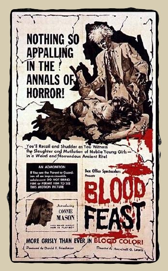 Blood Feast (Kan Şöleni), senaryosu Allison Louise Downe imzasını taşıyan ve gore filmlerin babası (Godfather of Gore- Goredon) Herschell Gordon Lewis tarafından çekilen bir yapım. Sinema tarihinde ilk gore öğeleri taşıyan film olarak da bilinen Blood Feast, İngiltere’de yasaklı ‘video nasties‘ sınıfına sokulan en eski film.