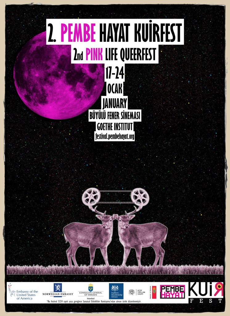 Pembe Hayat Derneği’nin düzenlediği 2. KuirFest, 17-24 Ocak 2013 tarihleri arasında Ankara’da gerçekleşecek. Ödüllü LGBT temalı filmleri, kuir teoriyi tartıştıracak etkinlikleri ve drag şovlara sahne olacak partileriyle KuirFest, soğuk Ankara kışını gökkuşağının renkleriyle ısıtacak. Pembe Hayat Lezbiyen, Gey, Biseksüel ve Trans (LGBT) Dayanışma Derneği’nin düzenlediği 2. KuirFest, 17-24 Ocak 2013 tarihleri arasında…