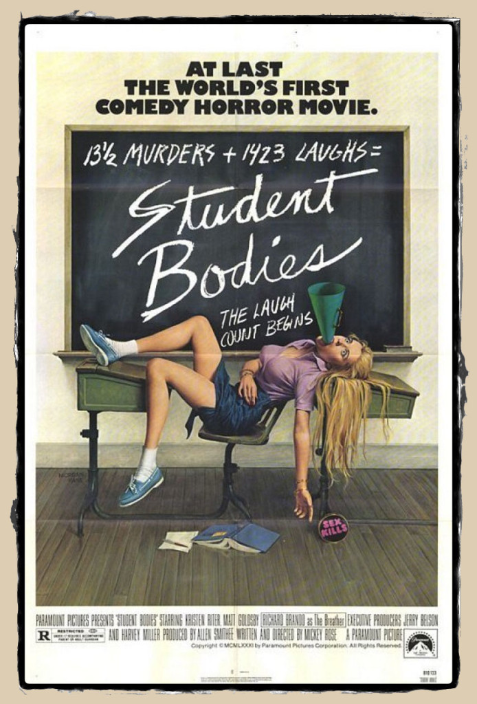 Mickey Rose’un hem senaryosunu yazıp hem de yönetmenliğini üstlendiği Student Bodies bir komedi filmi. Halloween, Friday the 13th, Prom Night gibi slasher filmleriyle dalga geçen film, türünün ilk örneklerinden birisi. Filmin oyuncu kadrosunun birçoğunu ise daha önce ve sonrasında başka hiçbir filmde yer almayan, ilk ve son oyunculuk deneyimlerini yaşayan oyuncular oluşturuyor. Korku filmlerini tiye […]