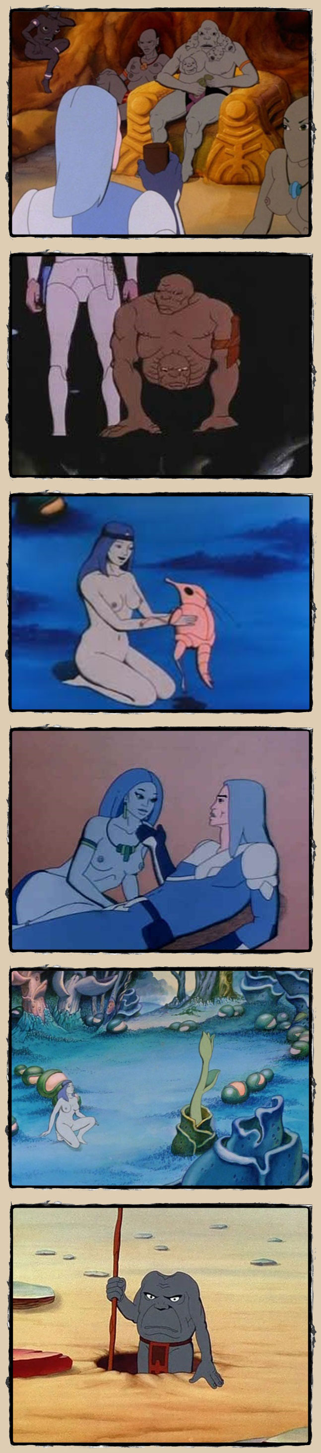 René Laloux ilginç, sürreel, öncü bir Fransız animasyon yönetmeni. Bahsedeceğim filmi dışında izlediğim La Planéte Sauvage (The Fantastic Planet) ve Les Maîtres du temps (Time Masters) daha zor anlaşılır yapımlardı. Adamın hayal gücü o denli geniş ki sembollerle yüklü filmlerinden bir sürü alt metin çıkarılabilir. Kuşku yok ki başyapıtları sayılan bu iki filmi anlatmak, Gandahar’dan daha zor. Ben daha kolayına yöneldim. Fakat Amerikan film endüstrisi her yere bulaşıyor. Bu filmin “Light Years” adında bir dublajlı versiyonu var. Üstelik orijinal müzikleri de değiştirilmiş. Mümkünse Fransızca versiyonunu ve gerçek score’lusunu bulup izleyin.