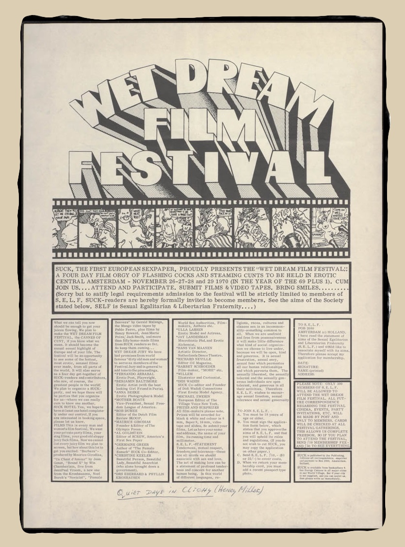 Wet Dream Film Festival erotik sinema alanında büyük bir etkinlikti ve 1970 ve 1971’de gerçekleştirilen iki etkinlikte birçok Danimarka yapımı film sahnelendi. İlginçtir ki festival Kopenhag’da değil Avrupa’nın karşı kültür başkenti olarak anılan Amsterdam’da gerçekleştirildi.