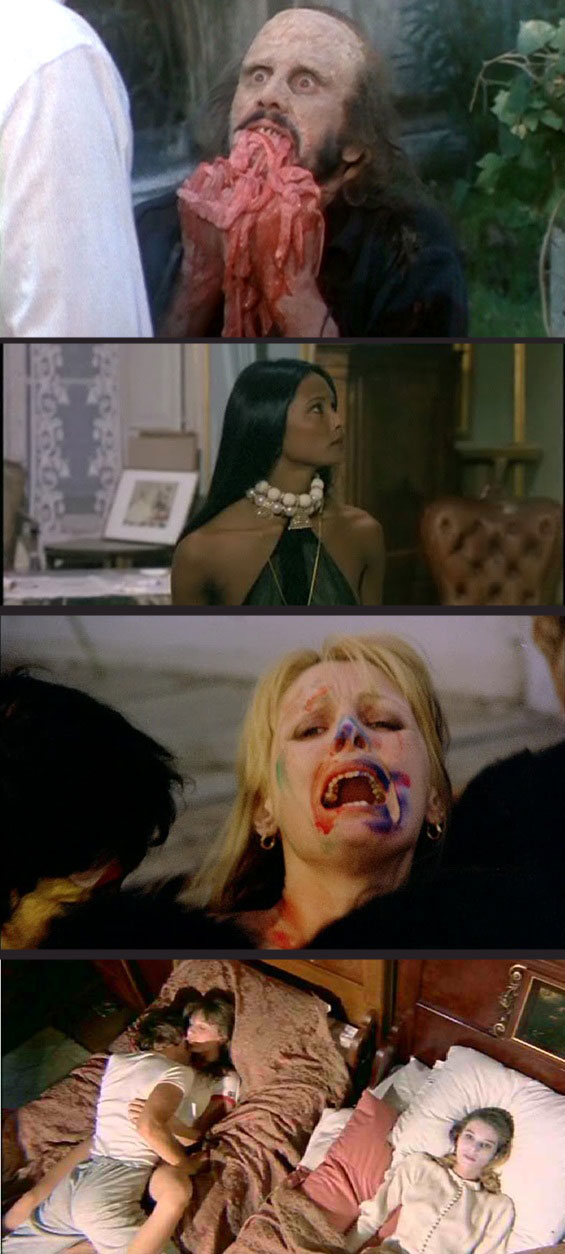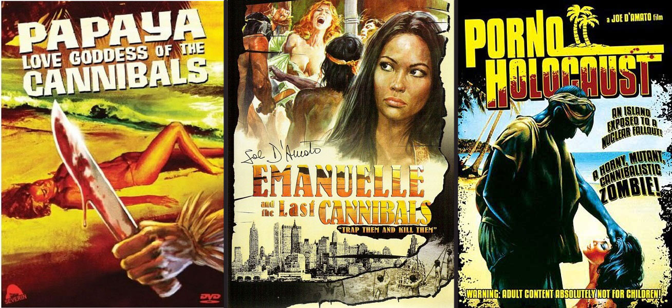 1994 yılına kadar D’Amato’nun korku filmleri ayrıca, çoğu yamyamlık özellikleri gösteren sansürlenmemiş şiddet sahneleri içermekteydi. Bu konudaki en iyi ve kötü ün yapmış D’Amato filmleri, canavar başrol oyuncusunun kurbanının rahiminden bir fetüsü söküp aldığı ve filmin sonunda kendi iç organlarını çiğnediği Anthropophagus filmi ve baş rol oyuncusunun insan kalbi ısırdığı Buio Omega filmleriydi. Bu konsept D’Amato’nun daha önce çektiği filmlerden biri olan, insan eti yenen bir akşam yemeği sahnesi içeren erotik thriller Emmanuelle e Françoise le sorelliene (1975) filminde de ortaya çıkmaktadır. Bunun yanında sadece Ator II: Cave Dwellers ve Endgame filmlerinde yamyamlığa çok az yer verildi.