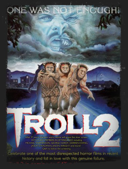 Troll 2 (1990) : Yanlış anlaşılmasın, Troll 2 çok sevdiğim bir filmdir. Fakat iki adet Harry Potter isimli karakter barındıran ilk filme baktığımızda daha fantastik bir konusu ve daha nereye gitmek istediğini bilen bir havası vardı. Troll 2′ye geri döndüğümüzde ise film daha en baştan şaşkınlık içinde olduğunu belli ediyor. Çünkü filmde bir tane bile troll yok. Onun yerine plastik maskeli goblinlerimiz var. Waits ailesi, Nilbog kasabasında (kasabanın ismindeki zeka pırıltısı her zaman beni benden almıştır) yaşayan bir aile ile evlerini bir süreliğine takas eder. Amaç kırsal kesimde geçirilecek bir tatildir. Fakat ailenin bilmediği şey Nilbog kasabasının goblinlerin yaşadığı, acımasız bir cadı tarafından yönetilen bir yer olduğudur. Bu durumda Waits ailesini ve başroldeki küçük oğulları Joshua’yı kim kurtarabilir? Tabii ki Joshua’ya sürekli goblinler hakkında masallar anlatan büyükbabası! Bu arada büyükbabası ölmüştür ve hayalet formatında ortada dolaşıp yalnızca Joshua’ya görünmektedir. Aile eve geldiğinde masada bulduğu yemekleri yemek için oturduklarında Joshua bu yiyecekleri yedikleri takdirde hepsinin goblin yiyeceği olacağını bilmektedir. Bu yüzden masaya çıkar ve yemeklerin üzerine işer. Babası burada filmde en sevdiğim replik olan “Misafirperverliğe işeyemezsin!” cümlesini kurar ve Joshua’yı cezalandırır. Ailesi tarafından haşarı bir çocuk olarak bilinen Joshua goblinlere karşı tek başınadır. Bu arada filme hiç lüzumu olmayan genç karakterler de dahil olur ve ortalık iyice panayıra döner. Aslında Troll 2 tek başına bir yazıyı, hatta bir siteyi hak eden bir film. Zaten kötü ününden dolayı da oldukça bilinmekte olduğundan dolayı kısa kesip yazıyı bitirmem daha yerinde olur. Filmi izlemediyseniz muhakkak izlemenizi, hatta peşinden filmin yapımını anlatan Best Worst Movie adlı belgeselini de izlerseniz tam olur.
