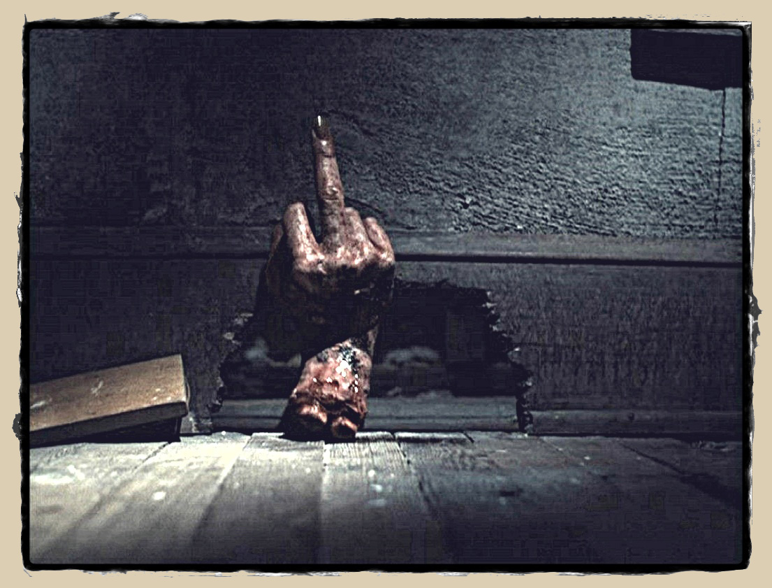İzleyicilerin güldüğü kesin. Sam Raimi’nin bu remake filmi Video Nasty ile Laurel ve Hardy birleşimi gibi. Joe LoDuca’nın 20ler tarzı soundtrack müzikleri eşliğinde, Ash’in eli fare deliklerine girip çıkıyor, etrafında dönüyor, gülüyor. Silahıyla vurduktan sonra sonunda Ash onu içinde Ernest Hemingway’in A Farewell to Arms kitabının bulunduğu bir kovanın altında yakalıyor.