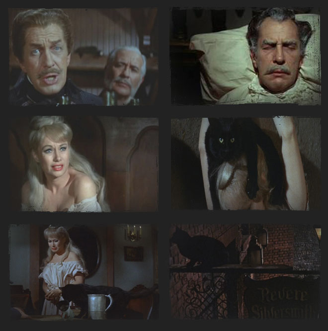 The Black Cat: Montresor Herringbone (Peter Lorre) karısı Annabelle’den (Joyce Jameson) ve onun siyah kedisinden nefret etmektedir. Bir gece bir şarap tadımı için bir yarışmaya katılır ve burada Fortunato Luchresi (Vincent Price) ile kapışır. Herringbone sarhoş olur ve bunun üzerine Luchresi kendisini evine bırakır. Evde Herringbone’un karısıyla tanışır ve beraber olmaya başlarlar.  Bunu öğrenen Herringbone intikam almak ister.