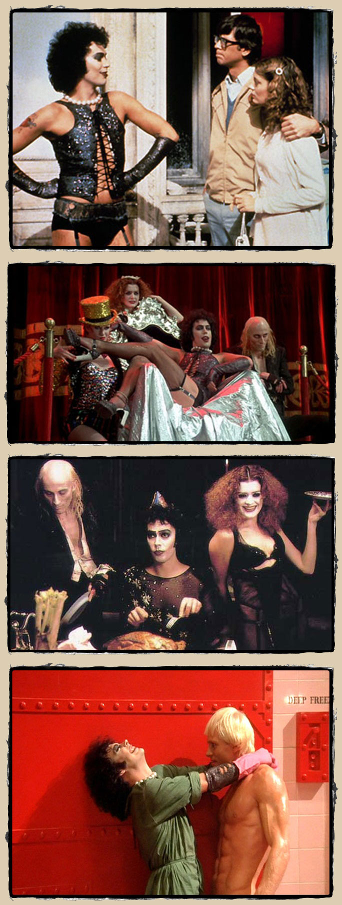 Konusuna gelince Brad ve Janet adlı saftirik çiftimiz Alacakaranlık Kuşağı tadında ormanda kaybolmuşlardır ve tabi ki sığınacak bir ev ararken şimşeklerin aydınlattığı bir şato görürler amaçları aslında sadece kurtulabilmek adına telefon etmek olmasına rağmen bu eve denk gelmeleriyle birlikte telefon dışında belki de hiç düşünmedikleri bir çok şey bulurlar. Şatoya adım atanın çıkışta kesinlikle aynı olmadığı bir yerden söz ediyoruz. Halloween partisi benzeri bir Transilvanyalılar Derneği Buluşmasına katılıp Time Warp şovunu canlı izlemek, üstte açıklamasını yaptığım tüm karakterler ile karşılaşıp çeşitli sıradışı maceralar yaşamak ve baştan çıkarılmak -baştan çıkarılmak demişken bunu tabi ki en iyi Dr.Frank’n Furter yapıyor-, jartiyer, büstiyer, kırmızı ruj, topuklu ayakkabı giyip dans etmek gibi pek çok “slutty” aktivite sonucunda bütün bunların neden olduğu konusunda belki de en iyi cevap yine filmdeki bir şarkı ile geliyor: