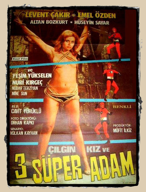 Çılgın Kız ve Üç Süper Adam (1973) yönetmenliğini Cavit Yürüklü’nün yaptığı, senaryosu Volkan Kayhan’a ait ve başrollerinde Emel Özden, Levent Çakır, Altan Bozkurt, Hüseyin Sarar ve Nubar Terziyan’ın olduğu pandomim özel efektleriyle ve mantığıyla 1930’ların B-filmlerine benzeyen eğlenceli bir film. Ayrıca Nubar Terziyan’ı kötü bir karakterde izlemek oldukça şaşırtıcı. Düşük bütçeli dönemin Türk filmlerinin çoğunda olduğu gibi bu film de izlemesi oldukça keyifli bir fantastik film. Bunun diğer bir örneği de Üç Süpermen Olimpiyatlarda (1984) filmidir, hatta bu filmde Çılgın Kız ve Üç Süper Adam’dan alınmış sahneler görmek mümkün.