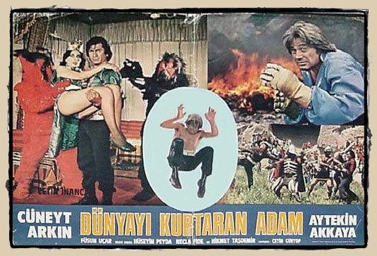 Türkiye’nin fantastik sinema alanındaki belki de en bilinen filmi Dünyayı Kurtaran Adam’dır. Bu film Star Wars, Planet of Apes, Black Hole, Flash Gordon, Moonraker, Raiders of the Lost Ark ve bir çok diğer filmin çekimlerini ve müziklerini kullandı. Bu öyle bir filmdir ki beyninizi öldürür, gözlerinizi yuvalarından fırlatır. Film, Cüneyt Arkın ve ekibi Star Wars’dan çeşitli sahneler gösteren bir ekranın önünde otururken bir patlamayla başlar. Çok düşük bir bütçeyle çekilen bir yapım olduğundan model efektler için stüdyolar yapılamamış ve Arkın bir pilot gibi, asiler kötü adamlar gibi, Ölüm Yıldızı Dünya gibi gösterilmiştir. Kahramanımız güya Princess Leia olan seksi bir fahişeye aşık oluyor, komik görünümlü bir Darth Vader’la ve bir robotla 6 metre uzunlukta aslında tahtadan yapılmış altın bir kılıçla savaşıyor.